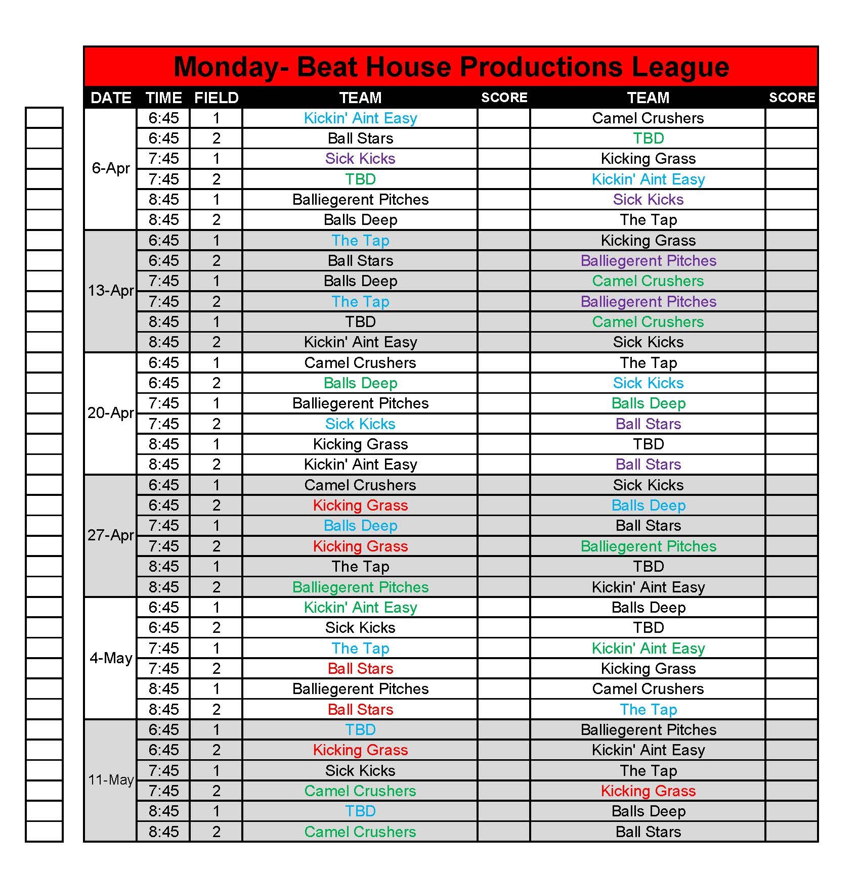 New teams will be put on a list on a first come basis. They will be giving their night (Monday, Tuesday Wednesday) preferences and added as space allows. Register early to save your spot for a better chance to get the night that you would like.