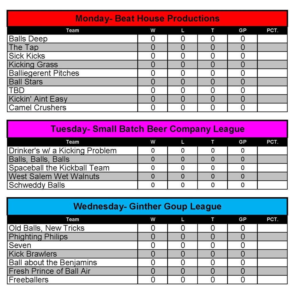 The organizational meeting will be Thursday, March 19 7:00PM @ Small Batch. If you are an individual this is your time to find a team needing players. If you are a new or a returning team, this is the time to find out the new info on the upcoming fall season.