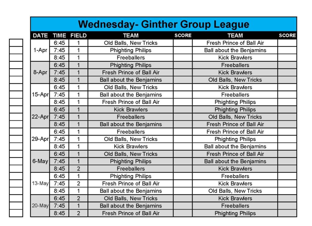 Thursdays may be used for rainouts.