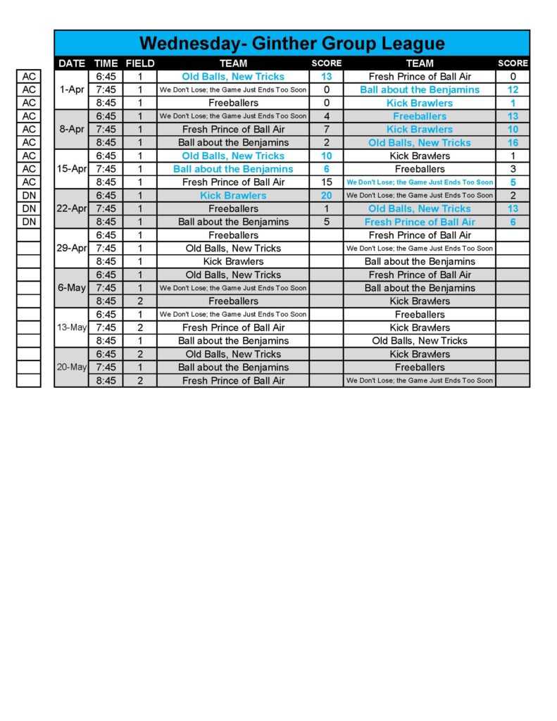 Thursdays may be used for rainouts.